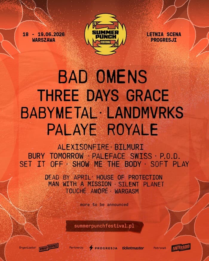 Pierwsza odsłona Summer Punch Festival odbędzie się 18 oraz 19 czerwca przyszłego roku na terenie warszawskiej Letniej Scenie Progresji. Do tej pory ogłoszono już, że na imprezie zaprezentują się Bad Omens, Three Days Greace, Alexisonfire, Landmrvks, Babymetal, Soft Play, Wargas, Dead By April, P.O.D., Set It Off oraz Dead By April. A to tylko mała część line-upu! Do wydarzenia dołączyli bowiem dziś: