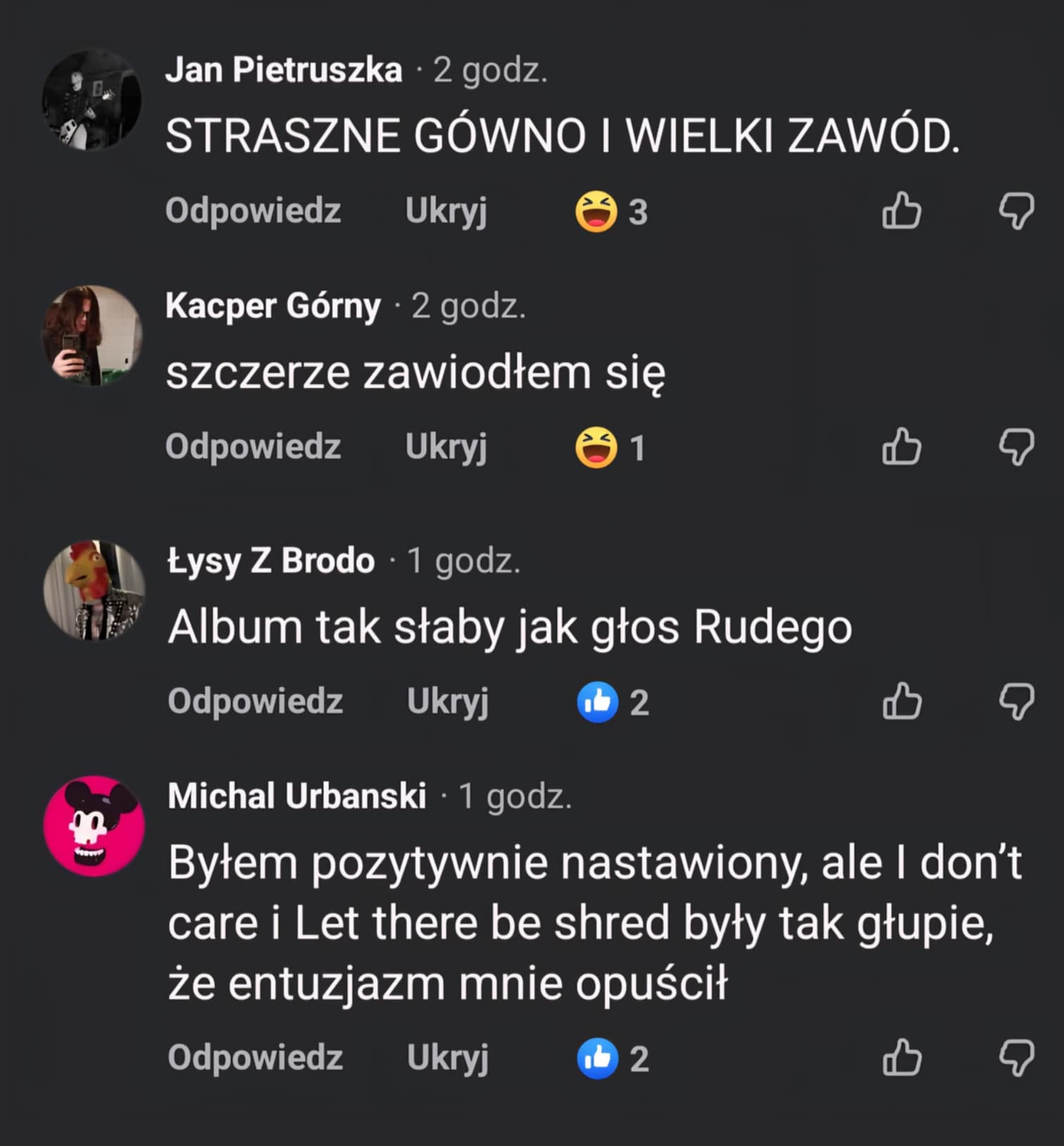 Tego typu komentarze, choć mniej liczne, pokazują wyraźny podział wśród odbiorców i potwierdzają, że pożegnalne wydawnictwa rzadko bywają oceniane jednomyślnie.
