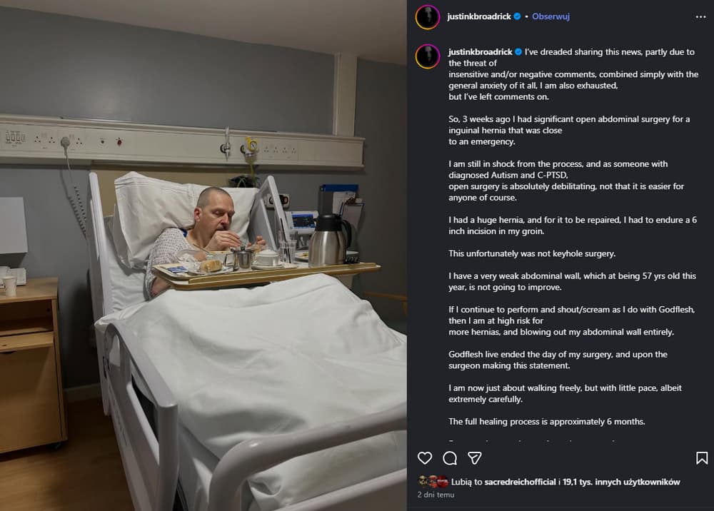 Justin Broadrick z Godflesh przeszedł poważną operację