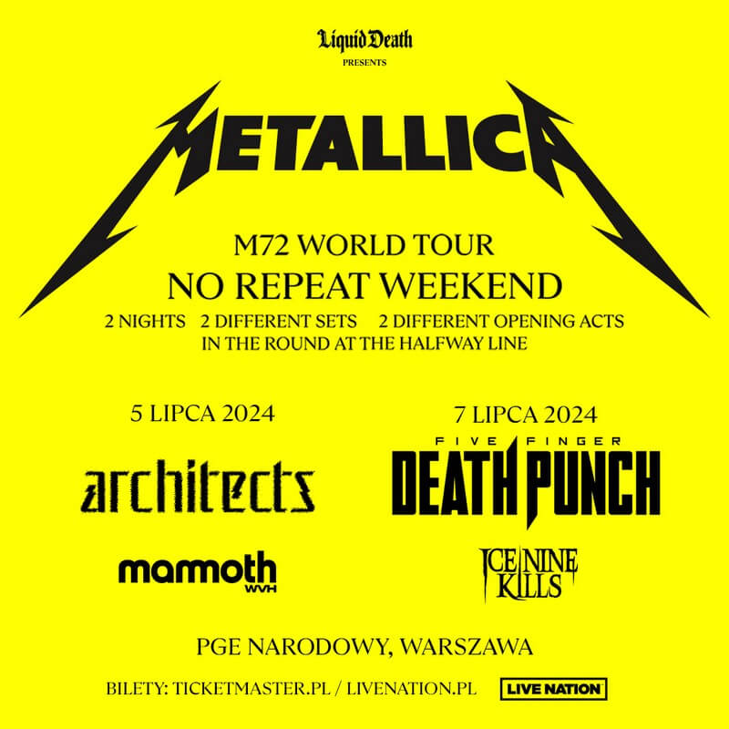 Metallica wystąpi na PGE Narodowym w dniu 5. i 7. lipca 2024 roku. Na scenie pojawią się również takie zespoły, jak Architects i Mammoth WVH (05.07.2024 r.), a także Five Finger Death Punch oraz Ice Nine Kills (07.07.2024 r.). Grupy zaprezentują się na słynnej scenie Snake Pit.